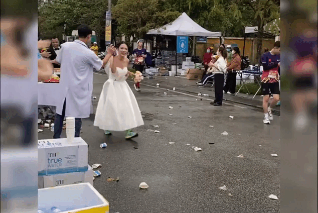 Khi đó, nhiều người trên đường chạy tỏ ra hào hứng, thậm chí hỏi vui: “Cô dâu đây rồi chú rể đâu?”. Phản ứng tích cực từ cộng đồng khiến cô và bạn đồng hành quyết định “làm tới” ở Huế.