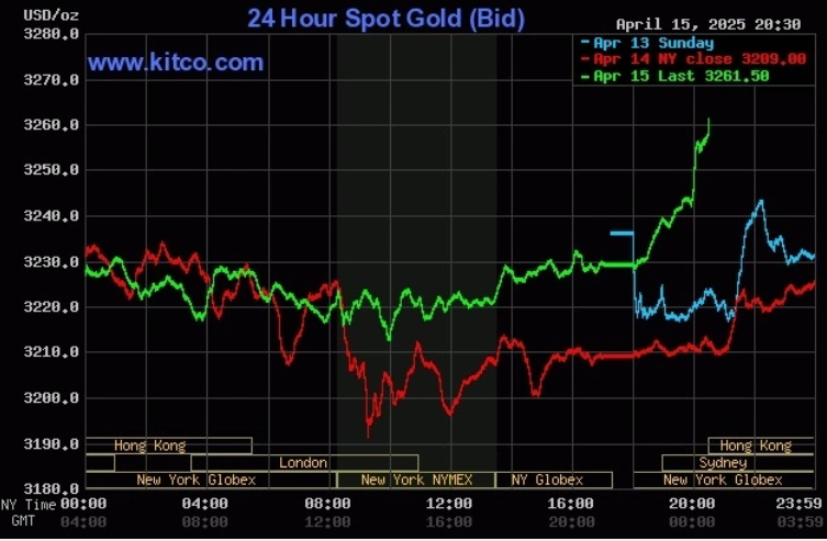 Sáng 16/4, giá vàng thế giới tăng thêm hơn 30 USD trong một giờ, lên mức cao kỷ lục mới tại 3.261 USD một ounce. Trước đó, chốt phiên giao dịch 15/4, kim loại quư tăng 20 USD lên 3.229 USD.