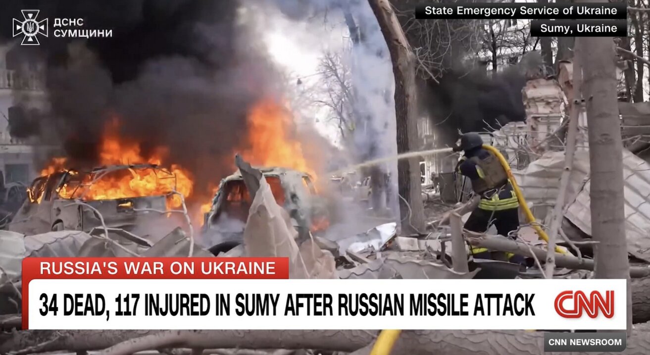 Tuyên bố của Bộ Quốc phòng Nga và Ngoại trưởng Sergei Lavrov cho biết, quân đội Nga đã phóng 2 tên lửa Iskander-M vào một tòa nhà ở Sumy – nơi diễn ra cuộc họp của lãnh đạo quân sự Ukraine và các đại diện phương Tây, quân nhân NATO cũng có mặt. Vụ tấn công đã khiến 60 quân nhân Ukraine thiệt mạng.