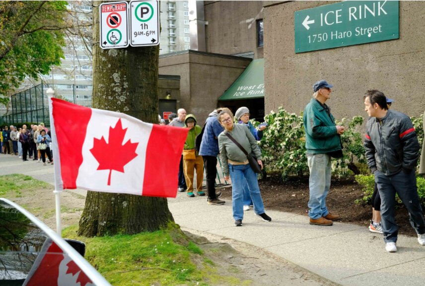 Cử tri trước một điểm bỏ phiếu ở Vancouver ngày 19.4