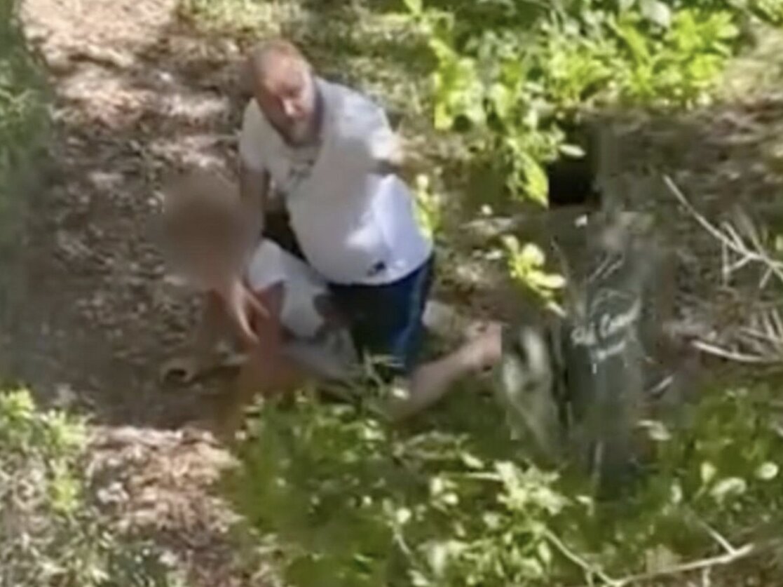 Bé gái gào khóc van xin khi bị người đàn ông khống chế, đè xuống đất. (Ảnh: Văn phòng Cảnh sát trưởng Quận Hillsborough)
