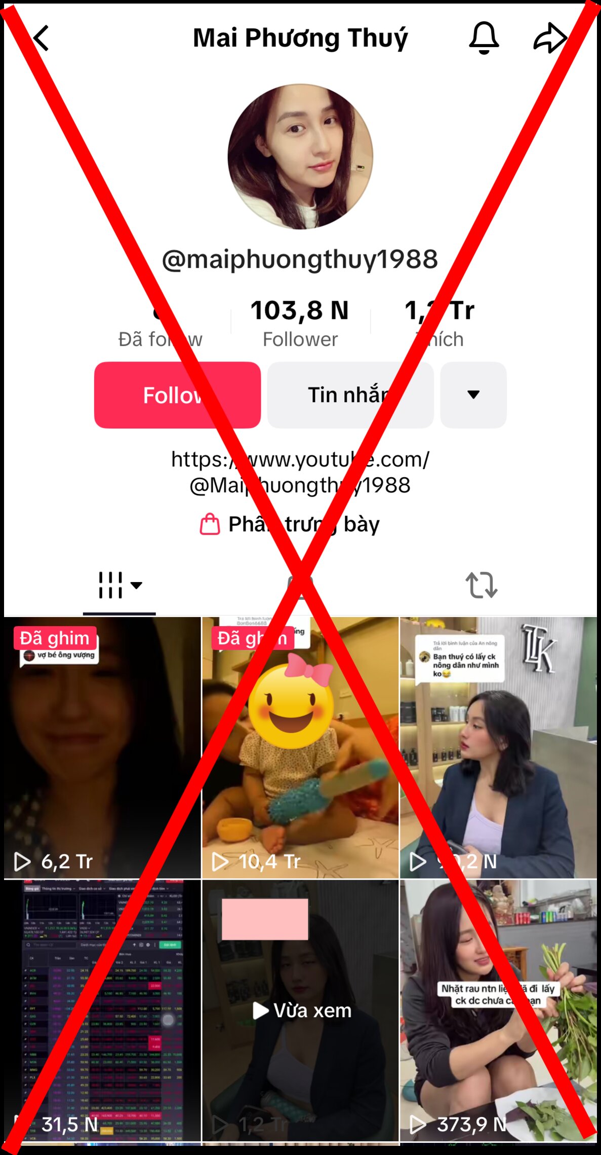 Mạng xã hội xuất hiện tài khoản tên “Mai Phương Thuý” đăng loạt thông tin gây sốc, có clip thu về hàng chục triệu lượt xem nhưng đây vốn là tài khoản giả mạo