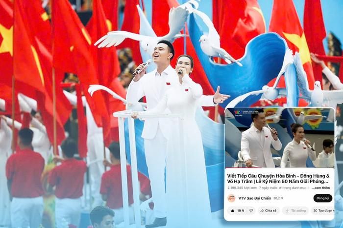 Vào ngày 8/5, ca sĩ Võ Hạ Trâm đã khiến người hâm mộ vỡ òa khi chia sẻ tin vui: màn trình diễn "Viết tiếp câu chuyện hòa bình", kết hợp cùng Đông Hùng tại lễ kỷ niệm 50 năm Giải phóng miền Nam, Thống nhất Đất nước, đã vươn lên vị trí #1 trên bảng xếp hạng thịnh hành âm nhạc của YouTube Việt Nam. Đây là một dấu mốc ấn tượng, khẳng định sức lan tỏa của tiết mục không chỉ về nghệ thuật mà còn về tinh thần dân tộc, truyền tải thông điệp hòa bình và đoàn kết sâu sắc.