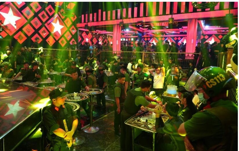 Nhận lệnh chỉ huy, gần 300 cảnh sát ập vào quán bar Paris Night Club tại TP Phan Thiết (tỉnh Bình Thuận) phát hiện ma túy được các “dân chơi” sử dụng trong tiếng nhạc chát chúa.