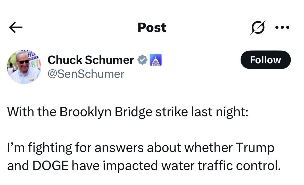 2-Thượng nghị sỹ dân chủ, Chuck Schumer nói việc chiếc tàu Mexico tung vào cầu Brooklyn là lỗi của ông Trump, bởi vì việc giãm ngân sách của ông nên không có người kiểm soát hải lưu.