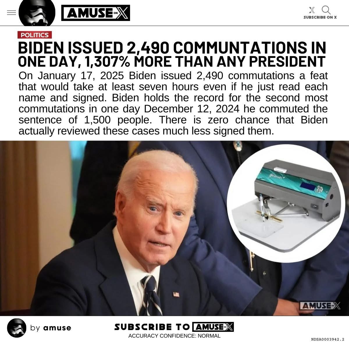 Chỉ trong ngày 17 tháng 1, 2025 trước 2 ngày rời chức vụ, ông đã ký 2490 lệnh ân xá. Với một con số khủng khiếp này, ông có đọc, có biết các lệnh này hay không. Hình