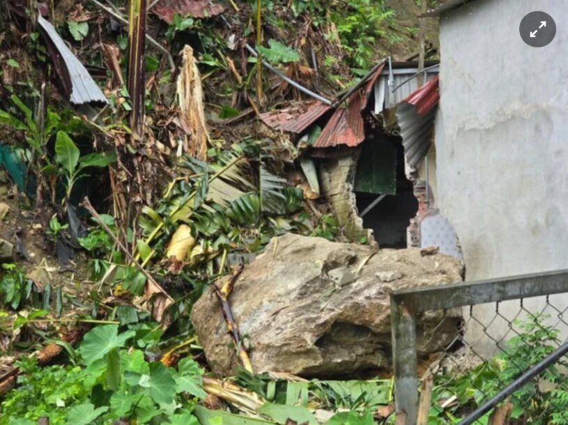Vụ việc hỹ hữu xảy ra khi tảng đá lớn từ trên núi lăn trúng nhà dân tại xã Tân Lĩnh, huyện Lục Yên, tỉnh Yên Bái.