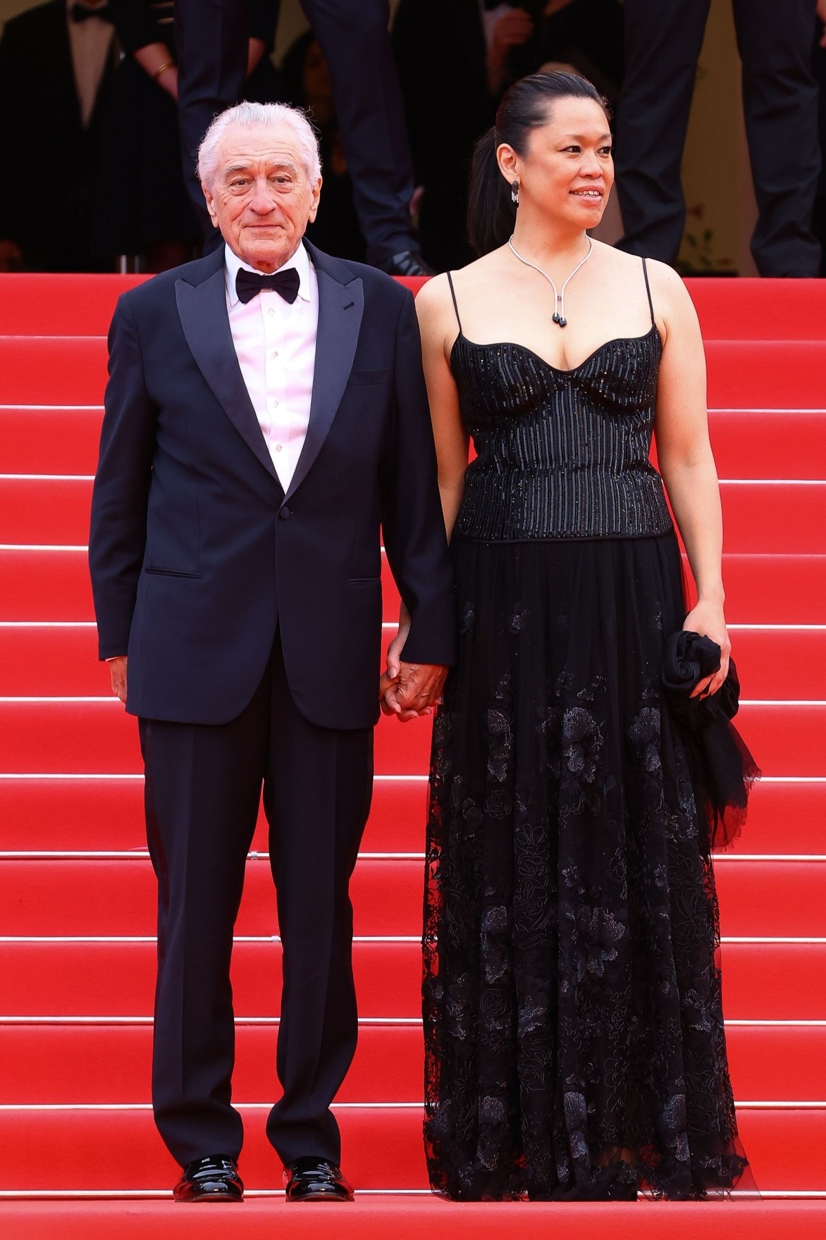 Robert De Niro và bạn gái kém 36 tuổi Tiffany Chen cùng diện màu đen trong ngày mở màn Cannes hôm 13/5.