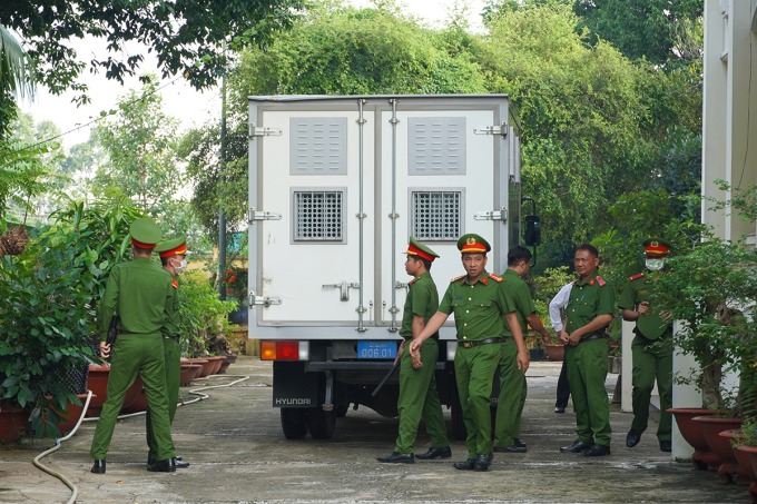 Lực lượng cảnh sát hỗ trợ tư pháp có mặt tại tòa từ sáng sớm 21/5. Ảnh: Nam An