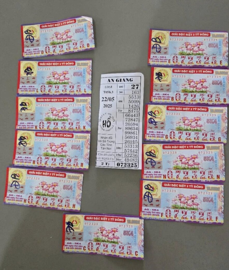Ngày 25-5, trao đổi với phóng viên, đại diện đại lý vé số Hổ ở Bạc Liêu xác nhận vừa đổi 13 tờ vé số trúng giải đặc biệt của Công ty TNHH Một thành viên Xổ số kiến thiết An Giang cho 4 khách hàng. Dãy số trúng đặc biệt là 072325, xổ ngày 22-5.