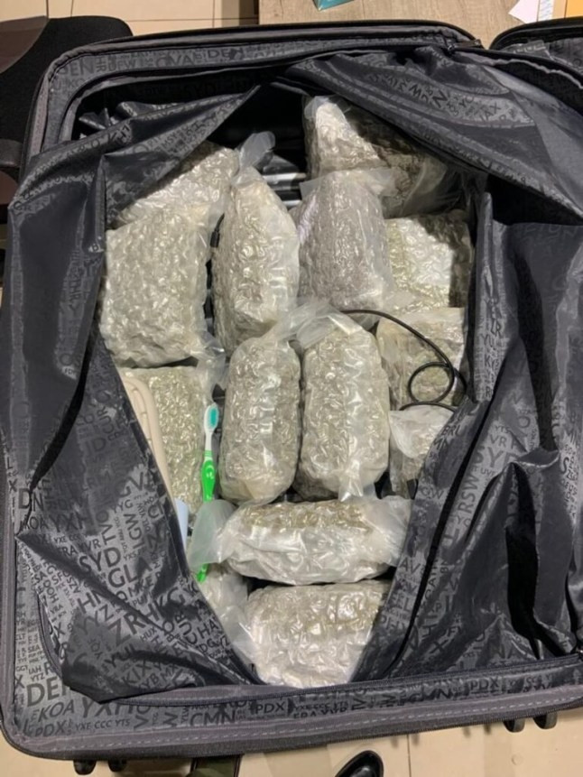 Chiếc vali của người phụ nữ trẻ được phát hiện chứa 17,6kg ma túy (Ảnh: Ủy ban Kiểm soát Ma túy (NACOC))