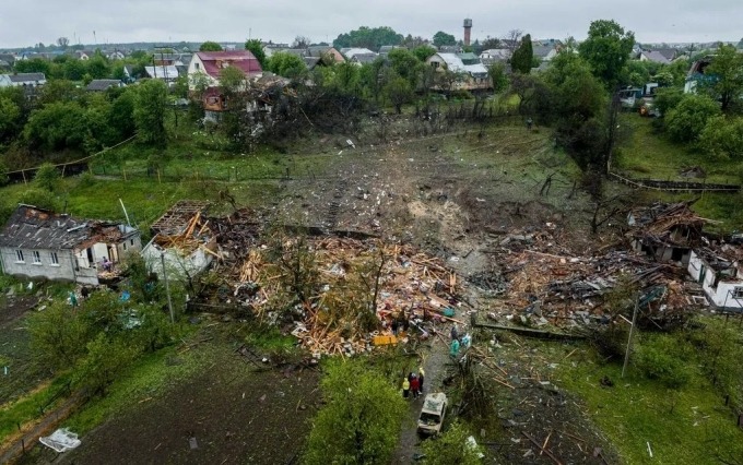 Các ngôi nhà bị phá hủy sau một cuộc không kích của Nga tại Korostyshiv, vùng Zhytomyr, Ukraine ngày 25/5. Ảnh: AP