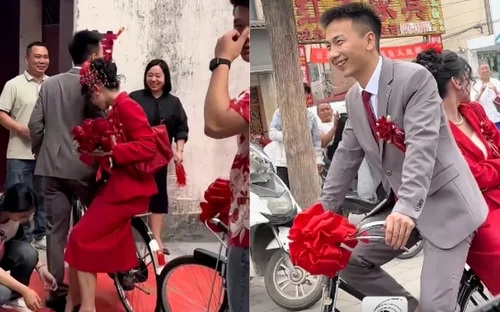 Lễ cưới độc đáo diễn ra vào ngày 13/5 tại thành phố Lạc Hà (Luohe), tỉnh Hà Nam, miền Trung Trung Quốc. Thay vì limousine hay xe sang thường được mượn hoặc thuê để rước dâu, chú rể đã đạp xe đưa cô dâu từ nhà cha mẹ cô về nhà mình trong hành trình kéo dài 20 phút. Hình ảnh giản dị nhưng đầy cảm xúc ấy đã được ghi lại và lan truyền rộng rãi, nhận về nhiều lời chúc phúc từ người đi đường cũng như cư dân mạng.