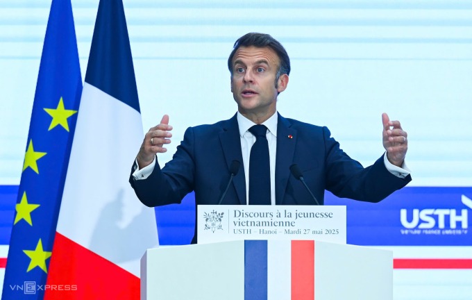 Tổng thống Pháp chia sẻ về sự chuyển đổi địa chính trị, khí hậu, khoa học công nghệ và nhân khẩu học, khi trò chuyện với sinh viên Việt Nam.