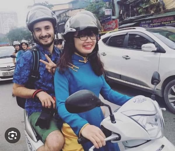 Bạn Tây ngoái lại thấy một xe container lù lù chạy đằng sau, mặt xanh lét, vừa sợ vừa khâm phục kiến thức giao thông của bạn Việt Nam.
