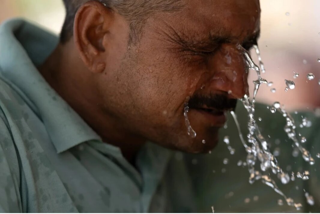 Nemi Chand, nông dân làng Kairu, bang Rajasthan, Ấn Độ, rửa mặt để chống chọi cái nắng gay gắt. Ảnh: Bloomberg.