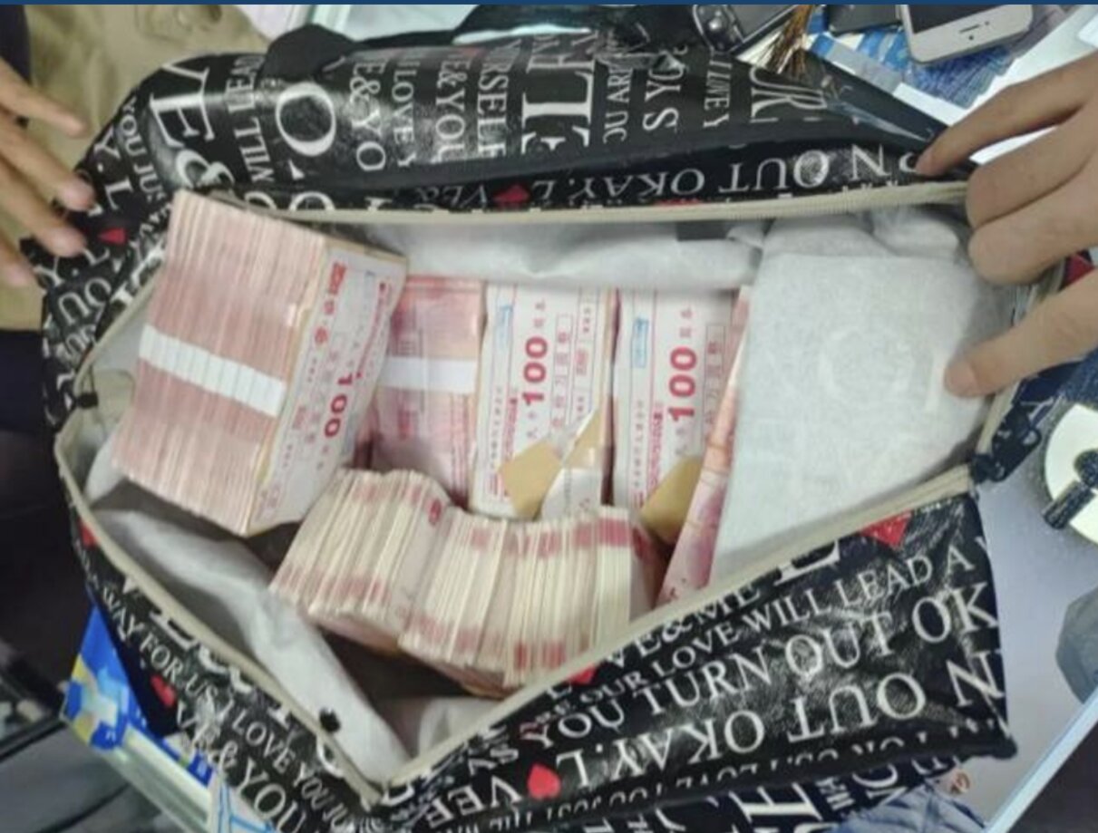 Lượng lớn tiền mặt cảnh sát Trung Quốc tìm thấy tại nơi ở của các đối tượng lừa đảo