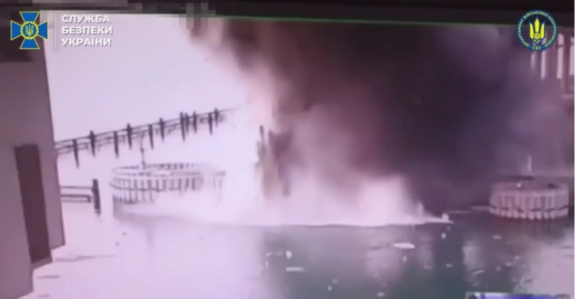 SBU cũng đã chia sẻ đoạn video ghi lại cảnh vụ nổ xảy ra gần một trong nhiều trụ đỡ của cây cầu. Nga chưa bình luận về tuyên bố của SBU.