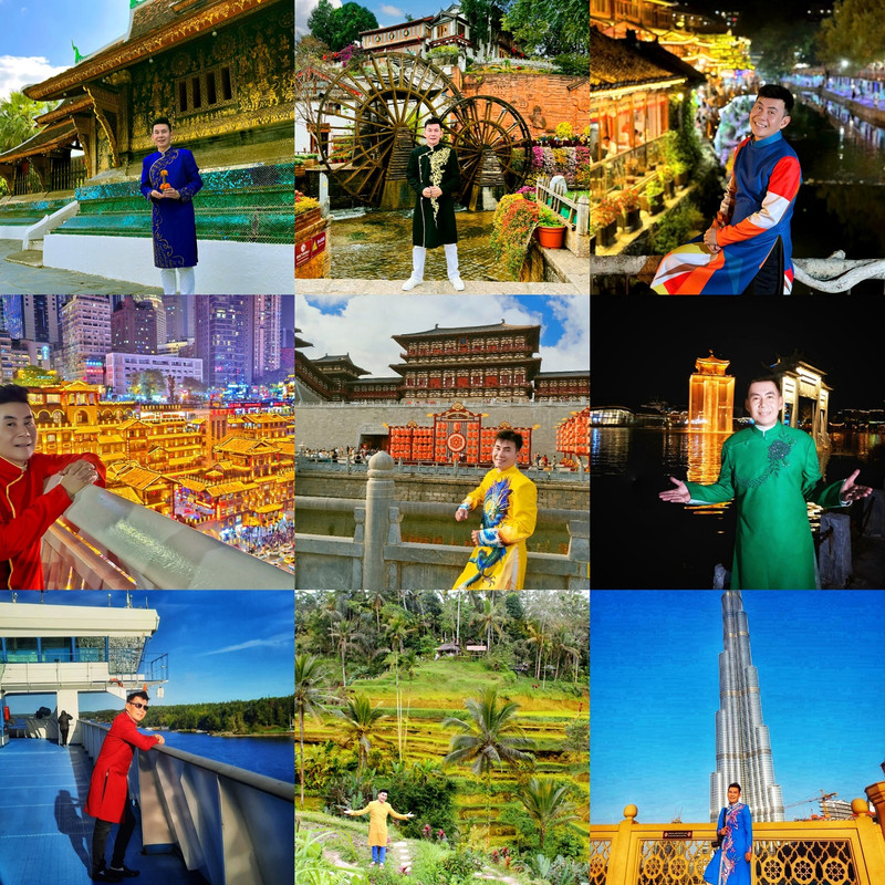 Nam ca sĩ tiết lộ: “Tính đến thời điểm hiện tại, tôi đã khám phá 68 quốc gia và 300 các tỉnh thành trên toàn thế giới. Tôi vừa nảy ra ý tưởng thực hiện 100 bộ ảnh áo dài tại những kỳ quan thiên nhiên tuyệt đẹp, công trình kiến trúc vĩ đại của 100 quốc gia”.