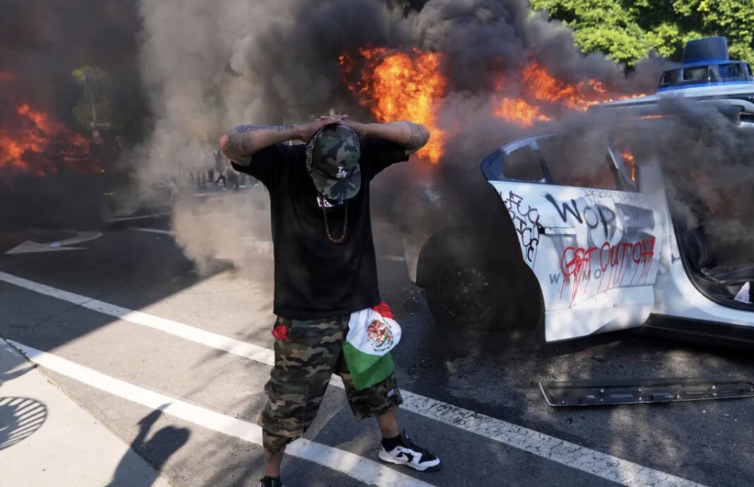 Đầu giờ chiều 8/6 (theo giờ địa phương), khoảng 200 người biểu tình đã tụ tập, mang theo biểu ngữ, loa phóng thanh, hô vang khẩu hiệu phản đối chính sách nhập cư cứng rắn của chính quyền liên bang.