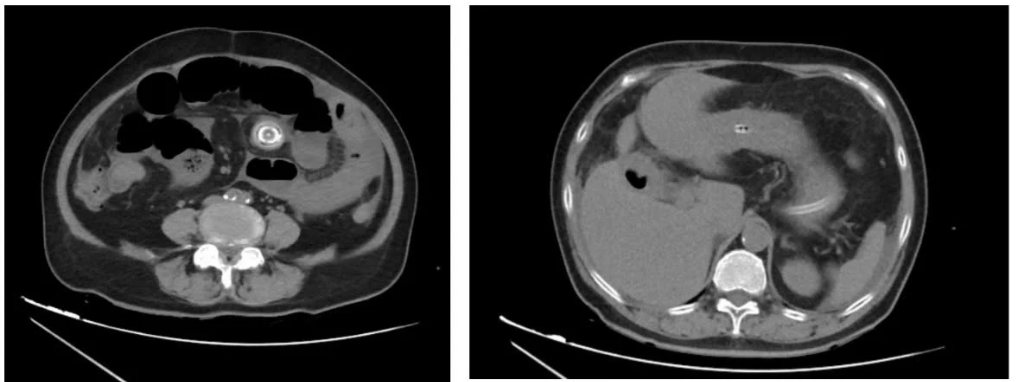 Bệnh nhân là bà Nguyễn Thị T. (77 tuổi, Hà Nội). Người nhà cho biết, trước khi nhập viện, bà T gặp các cơn đau bụng quặn thắt, bụng chướng căng như trống, nôn ra dịch xanh lục.