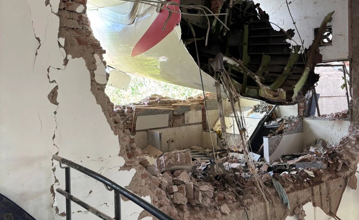 Những hình ảnh đầu tiên từ hiện trường cho thấy một phần thân máy bay cắm sâu vào tòa nhà ký túc xá. Bên trong nhà ăn của khu nhà, các khay thức ăn vẫn còn nguyên trên bàn, cho thấy thảm kịch xảy ra đúng vào giờ sinh viên đang dùng bữa trưa.