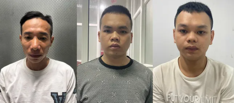 Ba đối tượng Lê Văn Cường, Lê Văn Tuấn và Lê Huỳnh Đức (từ trái qua) tại cơ quan Công an.