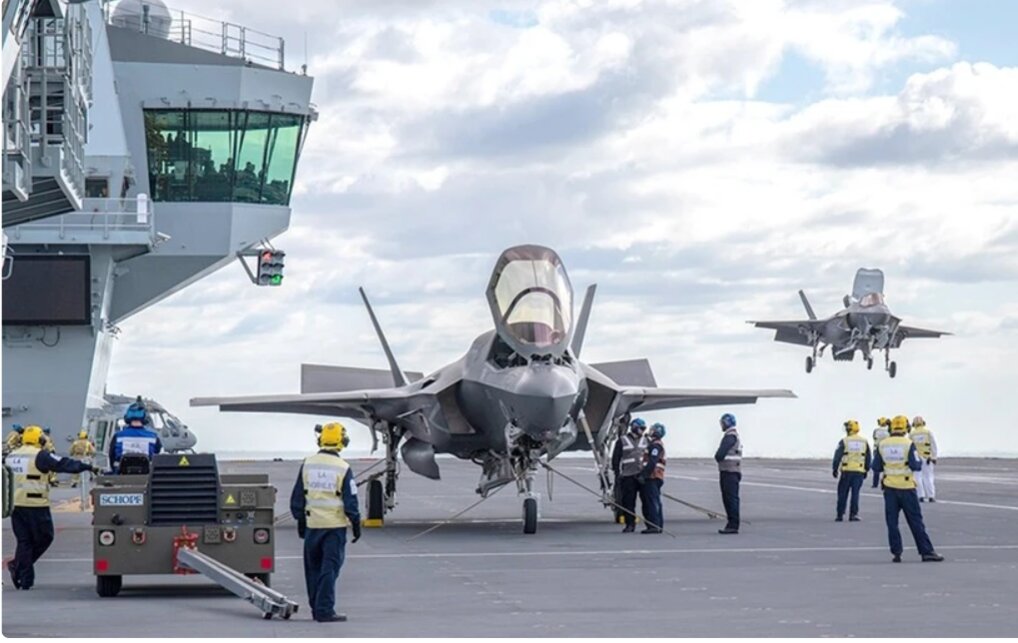 Tiêm kích F-35B tham gia một chuyến huấn luyện cùng tàu sân bay HMS Queen Elizabeth của Anh. (Nguồn: The Telegraph)