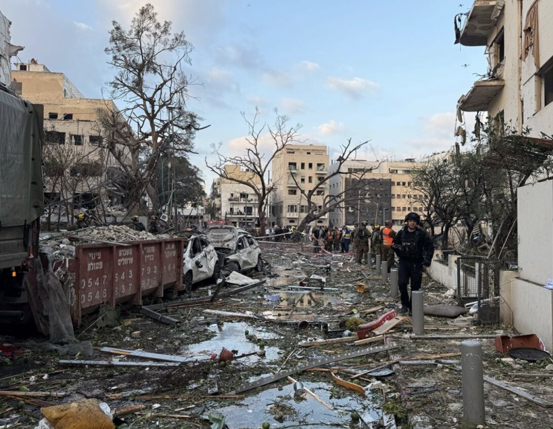 Đường phố ở Tel Aviv - Israel tan hoang sau cuộc không kích của Iran sáng sớm 16-6. Ảnh: CNN