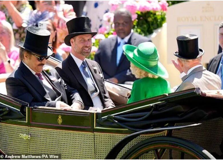 Hoàng tử William ngồi cùng xe ngựa với Vua Charles, Hoàng hậu Camilla và Hoàng tử Ả Rập Saudi sau khi Kate đột ngột rút lui. Ảnh: PA Wire.