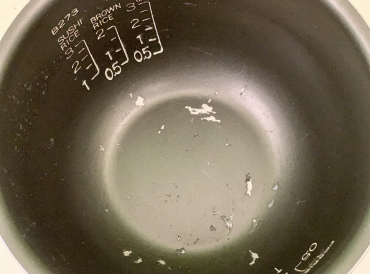 1. Dùng ruột nồi cơm điện đã bong tróc lớp chống dính, xước nhiều