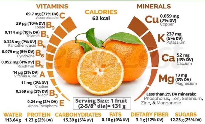 Cam, quýt chứa 43 mg canxi trong tổng số 1.000 đến 2.000 mg khuyến nghị tiêu thụ mỗi ngày cho một người trung bình, chúng cũng chứa một lượng lớn vitamin C giúp kích thích hệ thống miễn dịch.
