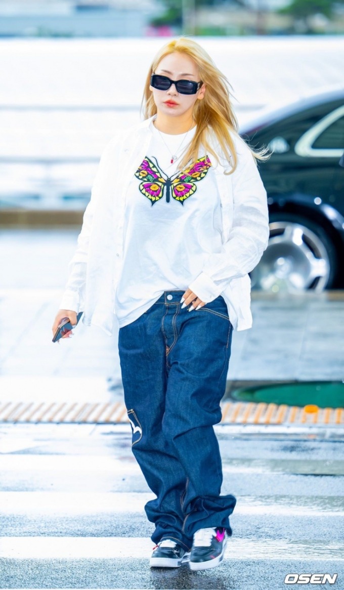 Ca sĩ CL ở sân bay Incheon sáng 20/6. Ảnh: OSEN