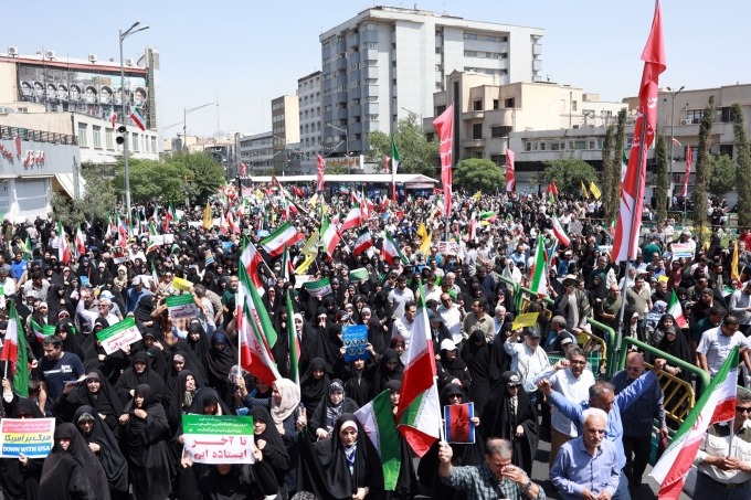 Người dân ở thủ đô Tehran xuống đường tuần hành sau buổi lễ cầu nguyện hàng tuần ngày 20/6, hô khẩu hiệu ủng hộ các lãnh đạo của đất nước và giơ ảnh những chỉ huy đã thiệt mạng từ khi chiến sự giữa Iran và Israel bùng phát. Họ cũng vẫy cờ Iran và cờ của nhóm Hezbollah ở Lebanon.