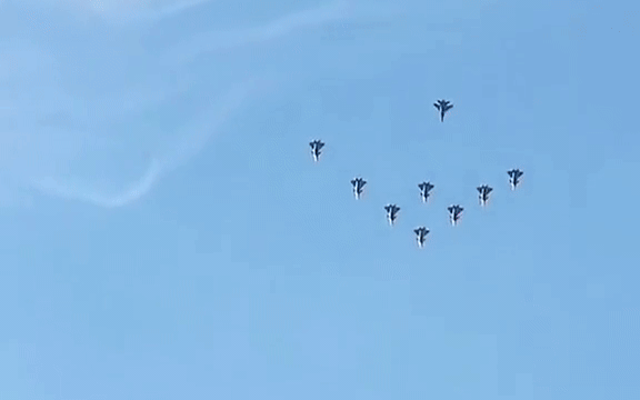 Theo người dùng mạng xã hội đã đăng những hình ảnh này, những máy bay chiến đấu được chụp ảnh đang bay theo đội hình cùng với một số tiêm kích tàu sân bay J-15T, ám chỉ khả năng chúng sẽ tham gia vào cuộc diễu binh sắp tới.