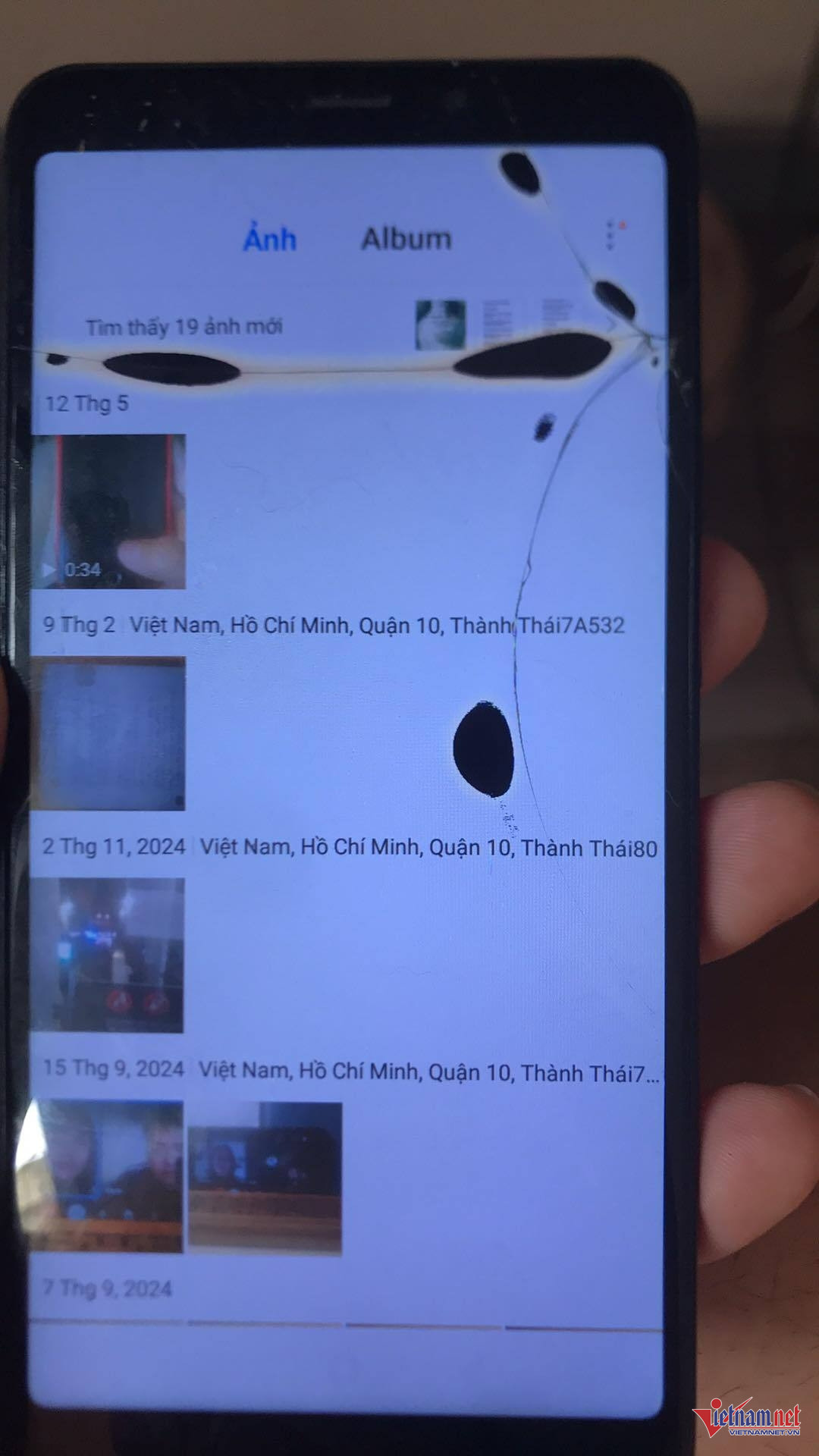 Chiếc điện thoại vỡ của anh Hải tặng Dương Mạc Anh Quân lúc túng quẫn. Ảnh: NVCC