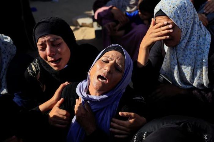 Người dân tham dự lễ tang của những người Palestine thiệt mạng trong cuộc không kích của Israel ngày 29/6. Ảnh Reuters.