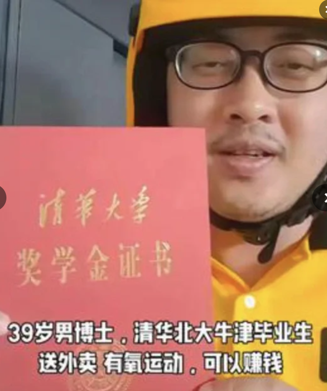 Ding Yuanzhao, một tiến sĩ sinh học từng học ở Đại học Oxford, hiện là shipper giao đồ ăn tại Bắc Kinh sau khi thất nghiệp vì không tìm được việc làm đúng chuyên môn.