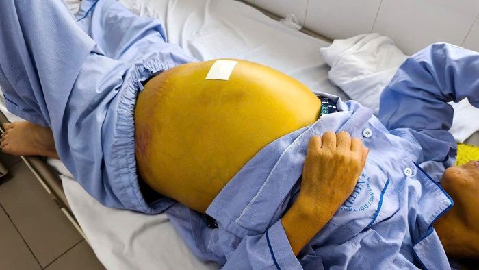 Ba ngày trước khi nhập viện, bà mệt mỏi, bụng chướng, da và mắt vàng đậm nên được đưa đến Bệnh viện Bệnh Nhiệt đới Trung ương. Tại đây, bà được chẩn đoán xơ gan mất bù, viêm gan B mạn tính và cổ trướng căng. Chỉ số đông máu rất thấp (PT 21%), Bilirubin toàn phần vượt 600 μmol/L – cho thấy gan đã suy nặng, tiên lượng xấu nếu không được ghép gan kịp thời.