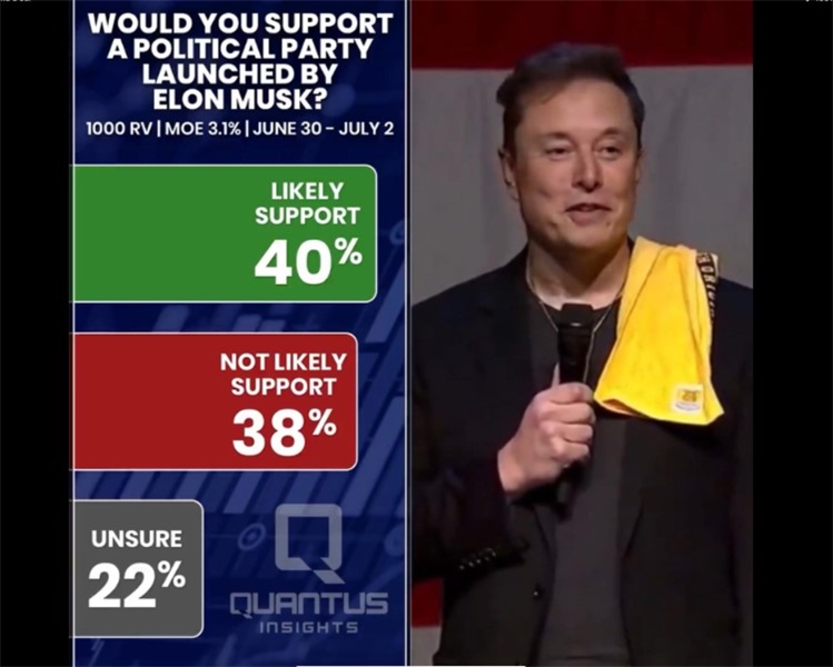 Theo như có sự hoài nghi vẫn cao ở các cử tri lớn tuổi và thuộc đảng Dân chủ, nhưng tín hiệu rõ ràng: một phần lớn cử tri sẵn sàng đón nhận điều gì đó mới mẻ, mang tính đột phá. Elon Musk và giả định về một Đảng chính trị mới phá vở thế lưỡng đảng: Ai được, ai mất?, sau khi ý tưởng của Elon Musk về một "Đảng Mỹ" - America Party - đã thu hút sự quan tâm từ 40% người trả lời, đặc biệt là các cử tri trẻ và nam giới.