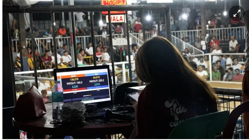 Một máy cá cược tại một trường đấu gà ở Philippines, nơi môn thể thao này từ lâu đã là trò tiêu khiển được ưa chuộng để đánh bạc. Ảnh: Jayson Albano.