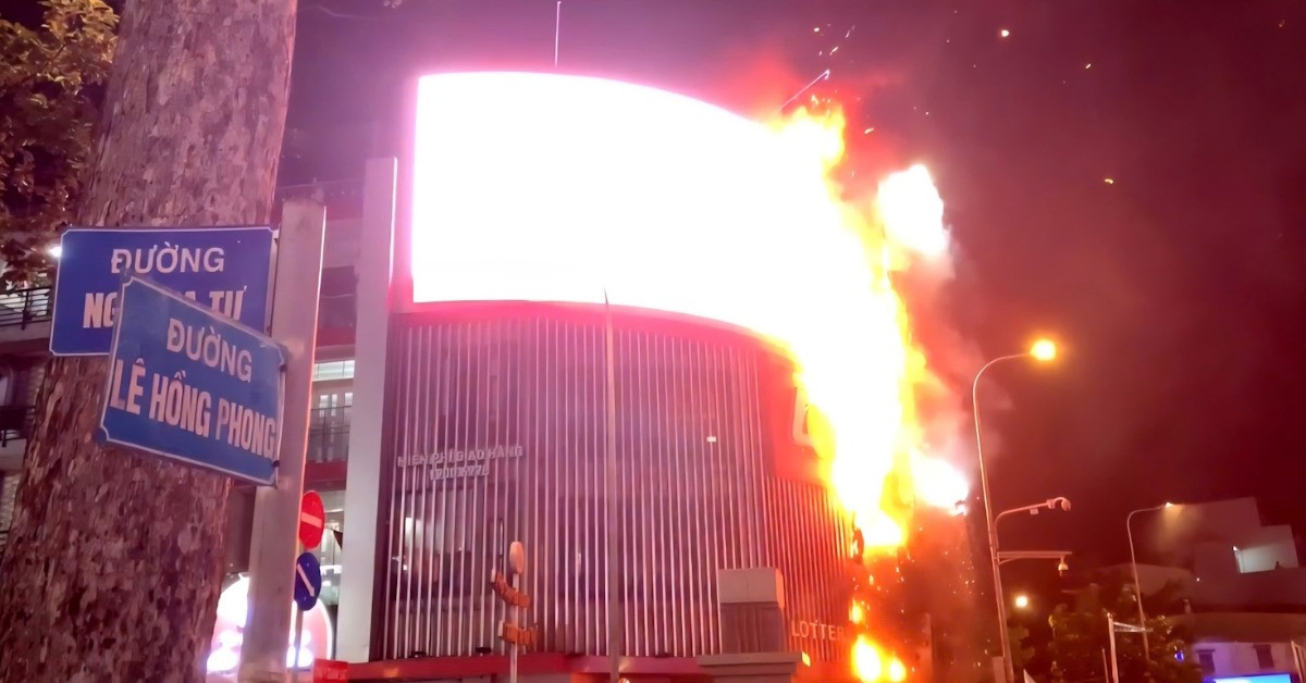 Thời điểm trên, người dân nghe tiếng nổ, sau đó phát hiện mặt tiền tòa nhà kinh doanh thực phẩm, thức ăn nhanh tại vòng xoay Lý Thái Tổ và tiệm cầm đồ bên cạnh lửa cháy đỏ rực, khói đen bốc nghi ngút.