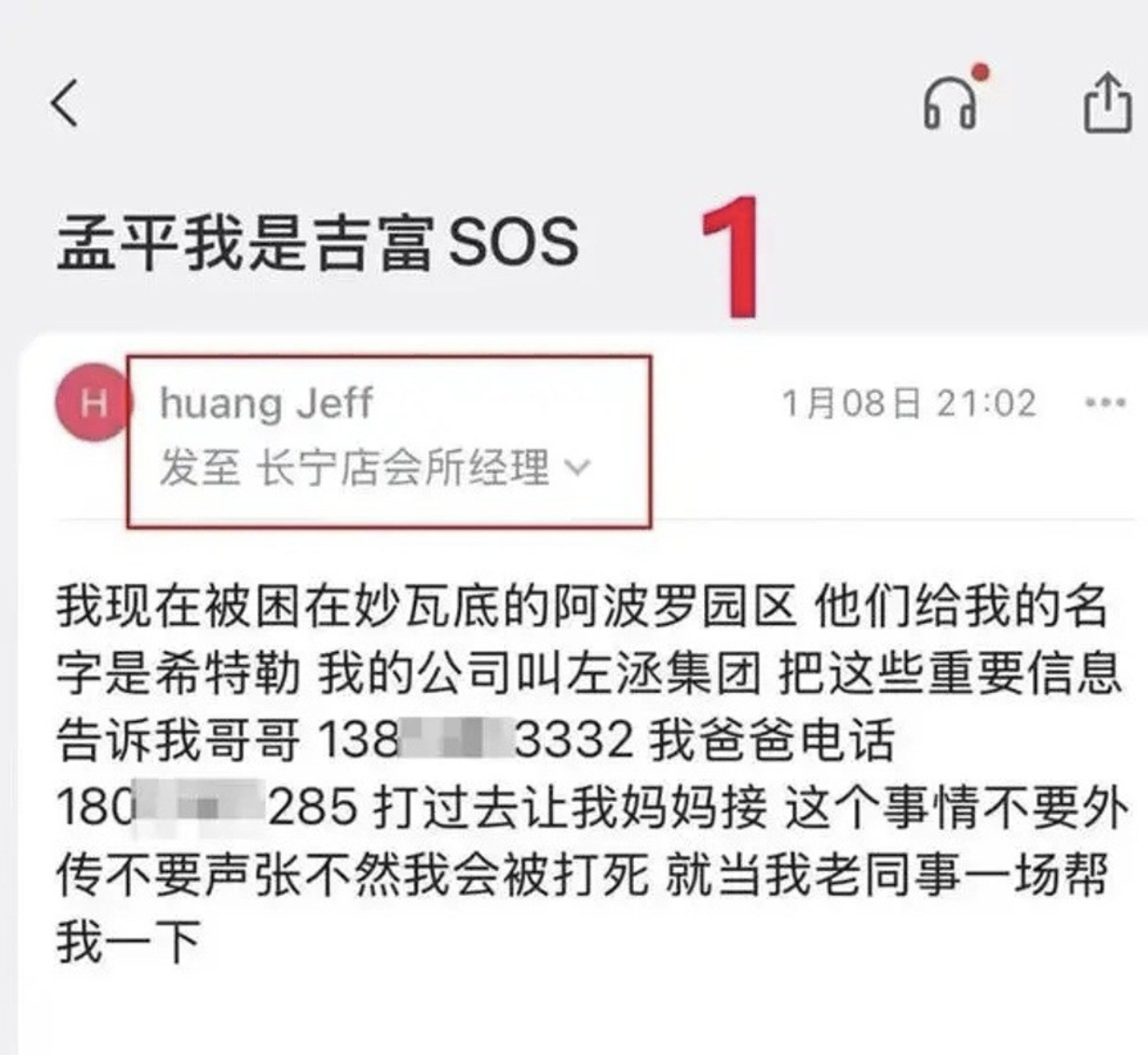 Trên mạng cũng lan truyền tin nhắn cầu cứu của một trong những nhân viên, người này cho biết mình đang bị giữ tại khu vực Apollo ở Myawaddy (miền đông Myanmar). Anh ta tiết lộ: "Họ đặt cho tôi cái tên là Hitler, công ty chúng tôi được gọi là Zuo Shen Group. Những thông tin quan trọng này tôi muốn nhắn gửi cho anh trai tôi." Anh ta còn cung cấp số điện thoại của gia đình và nhờ đối phương gọi cho mẹ mình, đồng thời nhấn mạnh: "Đừng tiết lộ ra ngoài, nếu không tôi sẽ bị đánh chết. Xem như từng là đồng nghiệp, xin giúp tôi một lần."