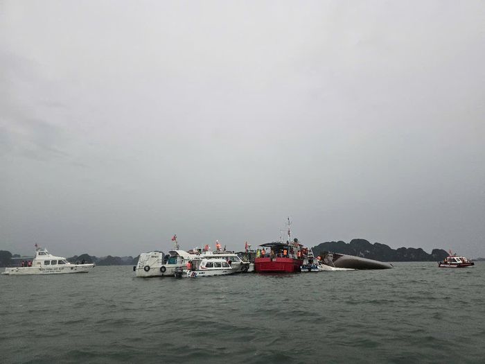 Hiện trường vụ lật tàu du lịch Vịnh Xanh 58 trên vịnh Hạ Long.