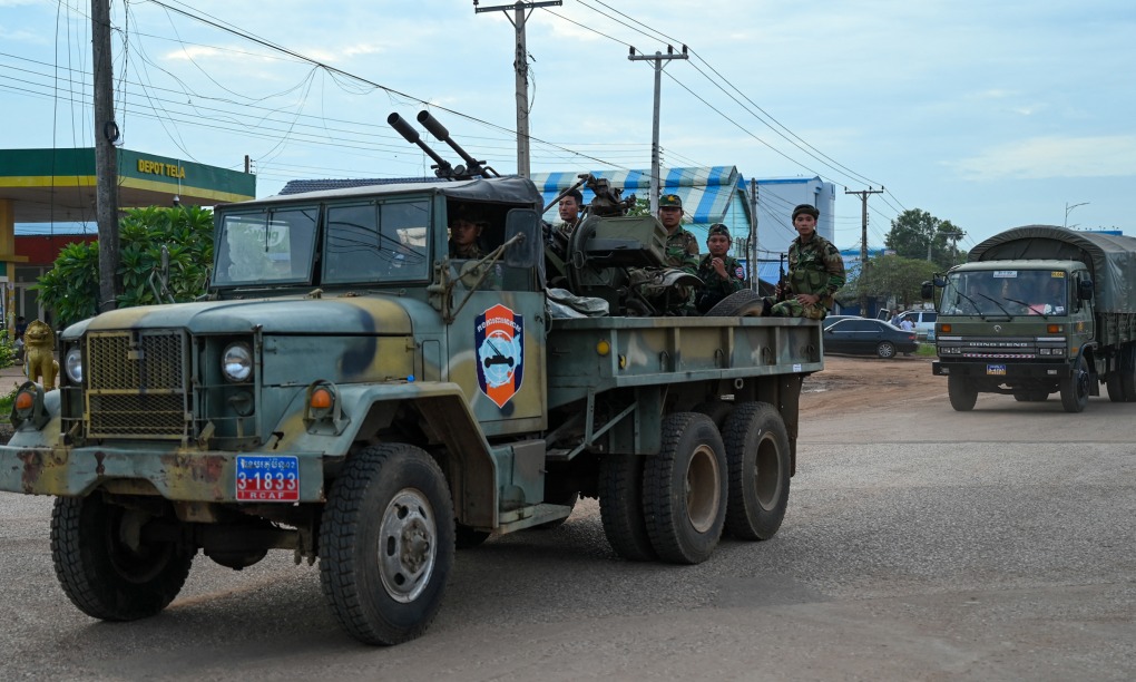 Khẩu đội pháo phòng không Campuchia di chuyển ở tỉnh Oddar Meanchey ngày 25/7. Ảnh: AFP