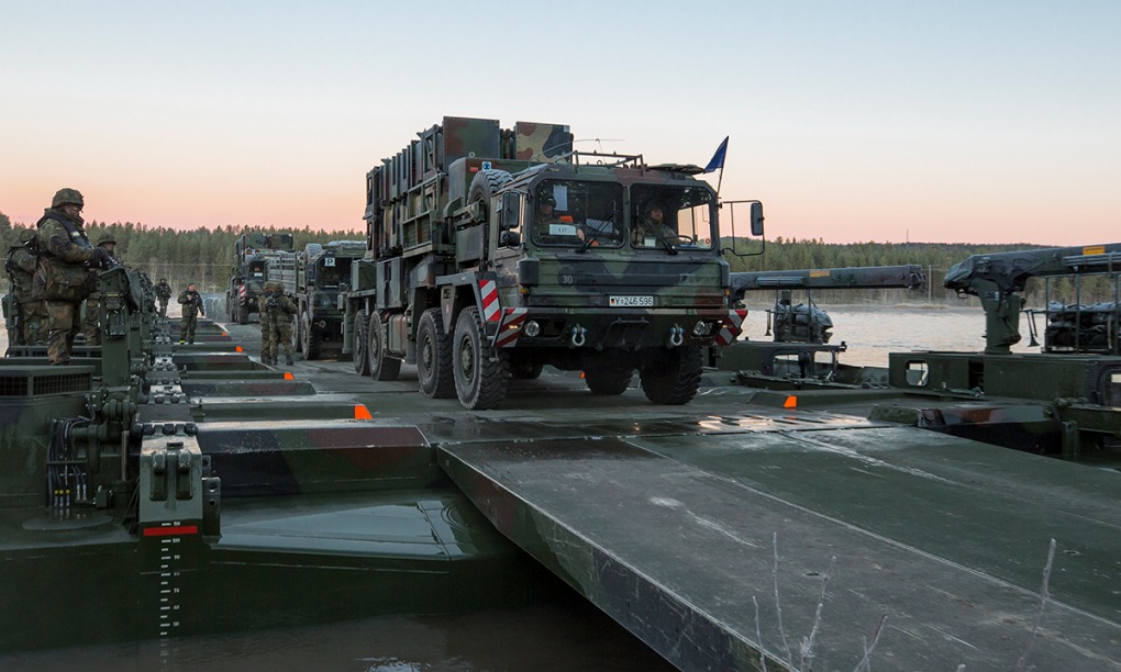 Bệ phóng Patriot của Đức vượt sông trong diễn tập tại Na Uy tháng 10/2018. Ảnh: Heer