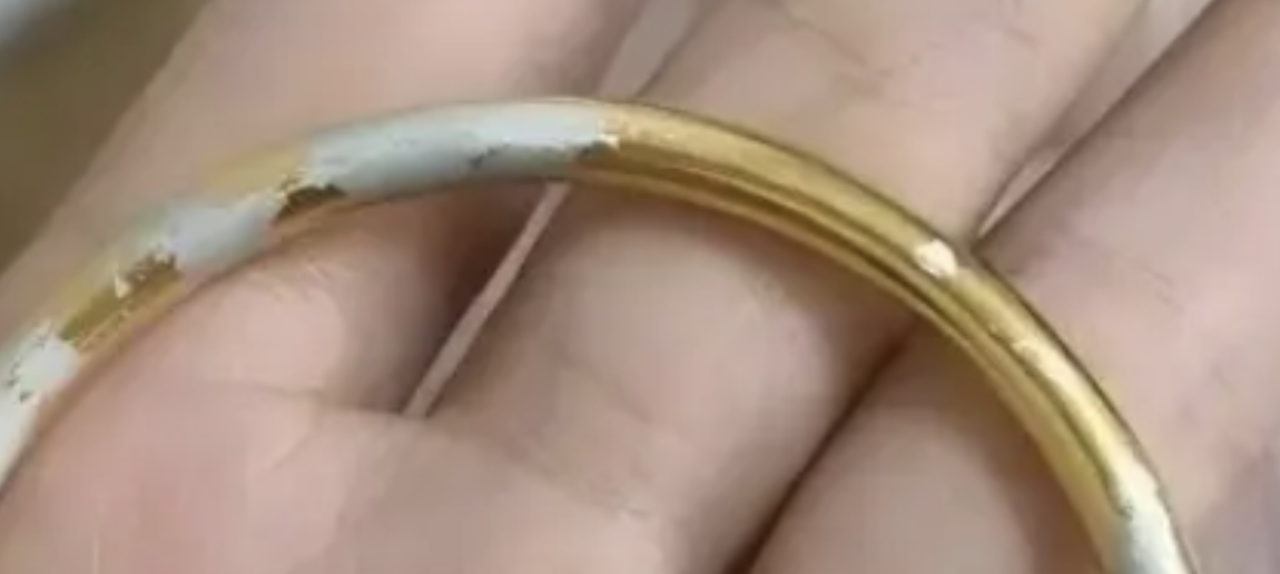Sang hôm sau, chị phát hiện chiếc vòng bắt đầu bị bay màu, lo sợ đó chỉ là hàng kém chất lượng, có thể gây hại cho sức khỏe của con nên chị tiện tay ném luôn xuống thùng rác dưới nhà.