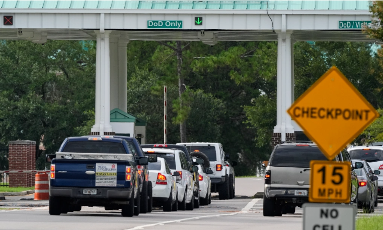 Cổng vào căn cứ Stewart tại bang Georgia hôm 6/8. Ảnh: AP