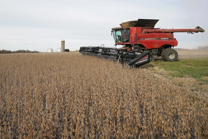 Thu hoạch đậu tương ở Roachdale, Indiana (Mỹ). Ảnh: Reuters