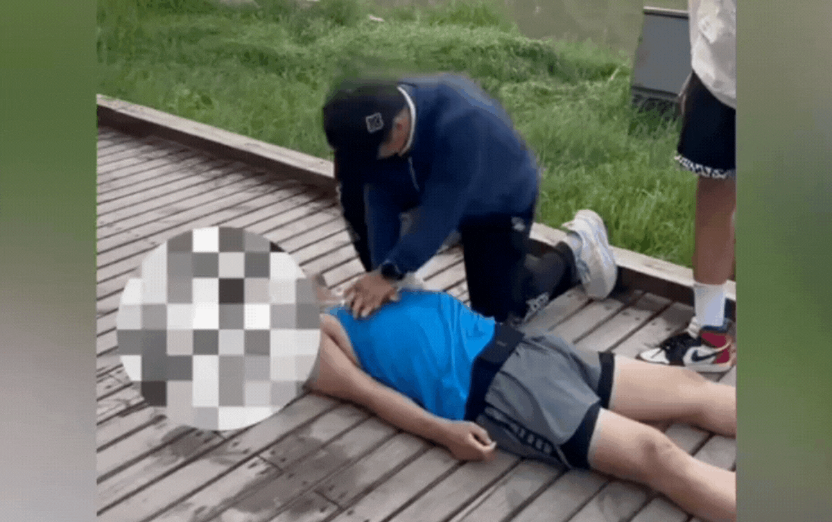 Điều đáng chú ý, thay vì bế thẳng nạn nhân đi, người cứu đã thực hiện ngay các bước sơ cứu đuối nước đúng cách, giúp nạn nhân hồi tỉnh.